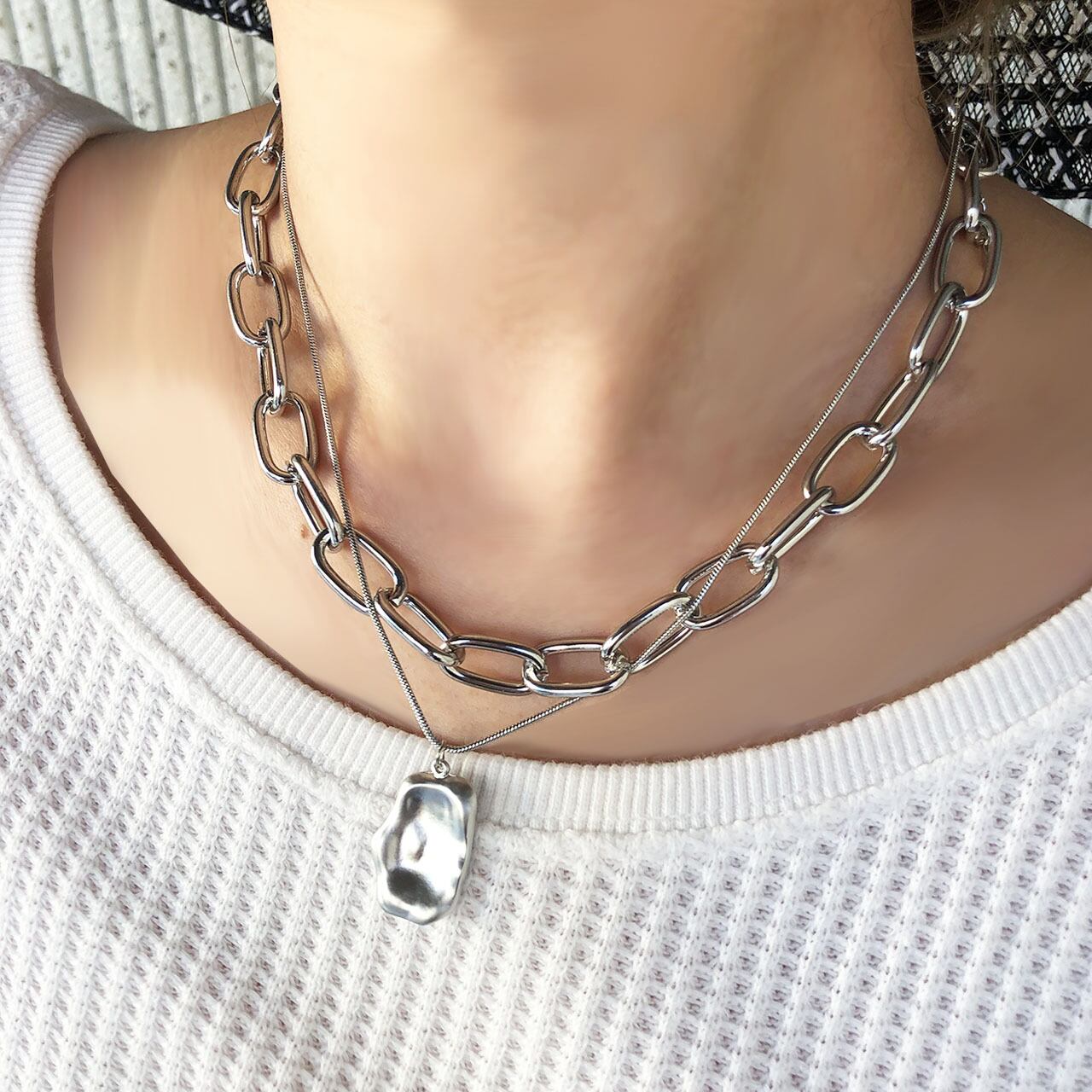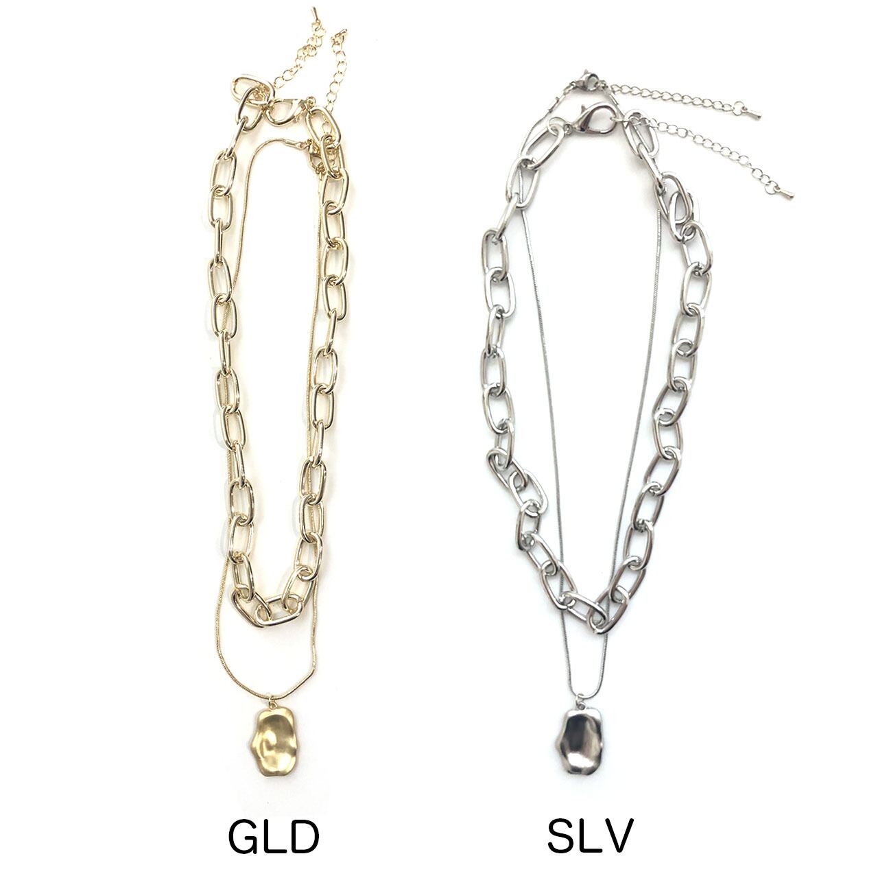 シーリングトップがお洒落なペンダントと、トレンドの大きめのチェーンネックレスがセットになったお得な2点セット。