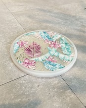 LA発サーフアーティスト「Jessica Miyuki(ジェシカ・ミユキ)」のアートがプリントされたグリッター入りのコースターです。透け感がありキラキラ光るグリッターが可愛いデザインになっています。外側はラバー素材になっているので滑りにくく、水にも強くなっています。