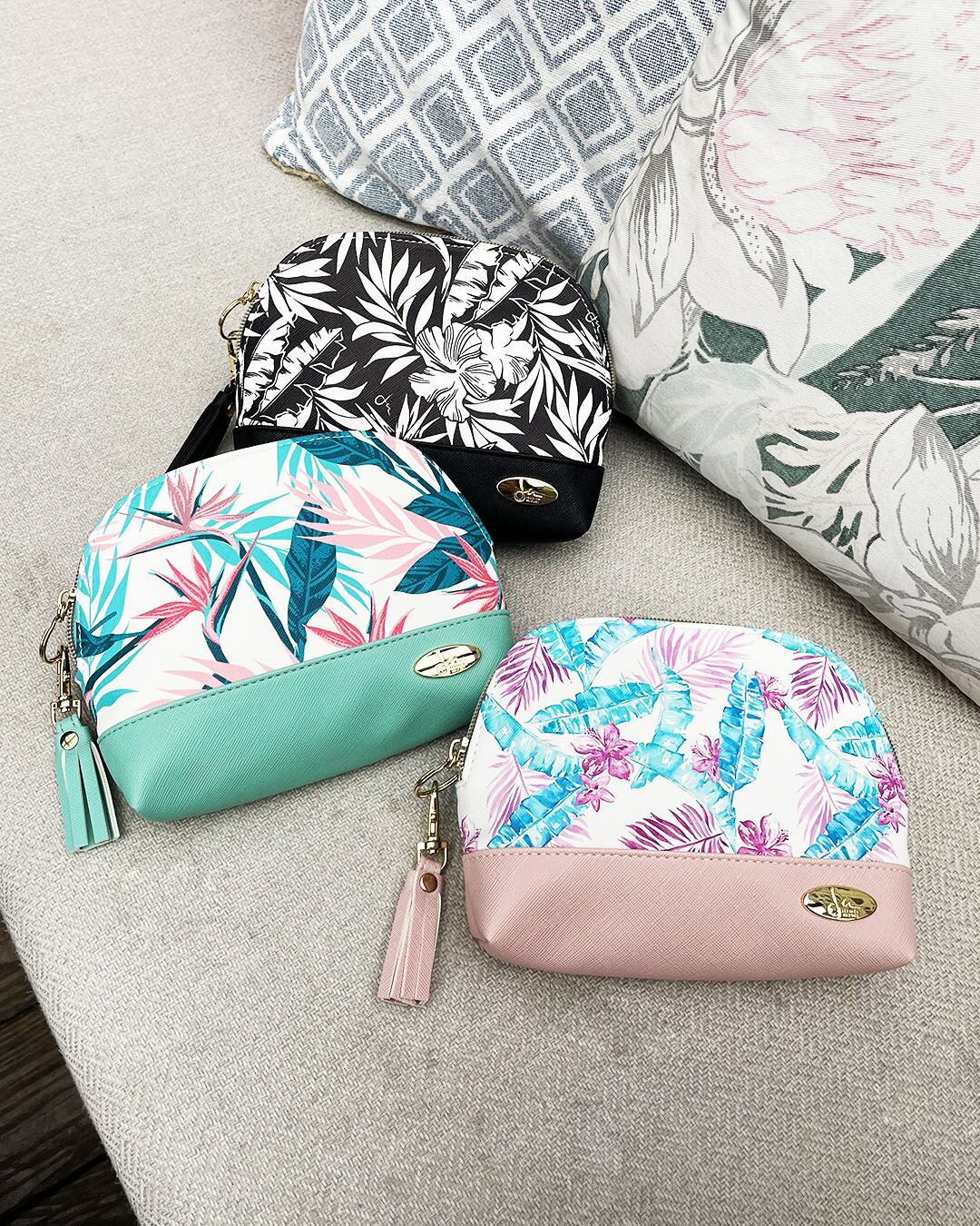 LA発サーフアーティスト「Jessica Miyuki(ジェシカ・ミユキ)」のアートがデザインされた合皮ポーチです。可愛らしいデザインと機能性を兼ね備えたアイテムです。プリントされた花柄やアニマルモチーフがポーチを華やかに演出し、持っているだけで気分が上がります。小さめながらも収納力抜群で、化粧品や小物を整理整頓するのに最適です。普段使いはもちろん、旅行やお出かけ時にも重宝すること間違いなし。気軽に持ち歩けるサイズ感も魅力の一つです。