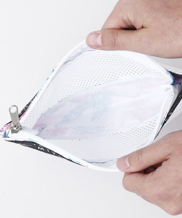 LA発サーフアーティスト「Jessica Miyuki(ジェシカ・ミユキ)」のアートがデザインされたメッシュ素材のポーチです。マチがない分嵩張らず、デイリーやトラベル、レジャーにもおすすめです。