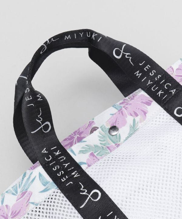 LAを拠点に活動しているサーフアーティスト「Jessica Miyuki (ジェシカ・ミユキ)」のアートがデザインされたメッシュ素材のミニトートです。マチがしっかりあり、収納に便利です。開口部はマグネットボタン付き。持ち手はロゴが入っていて、ビーチカジュアルにぴったりなアイテムです。